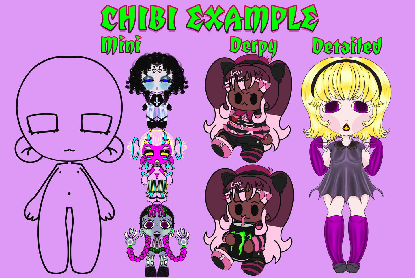 ☆ Chibi: $120 (Front + Back, 3 Detail Highlights) ☆